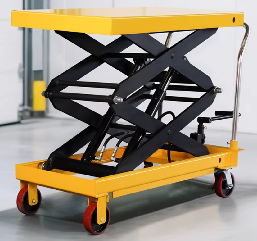 Double Scissor Design: Provides significantly higher lift heights without increasing the footprint of the cart.